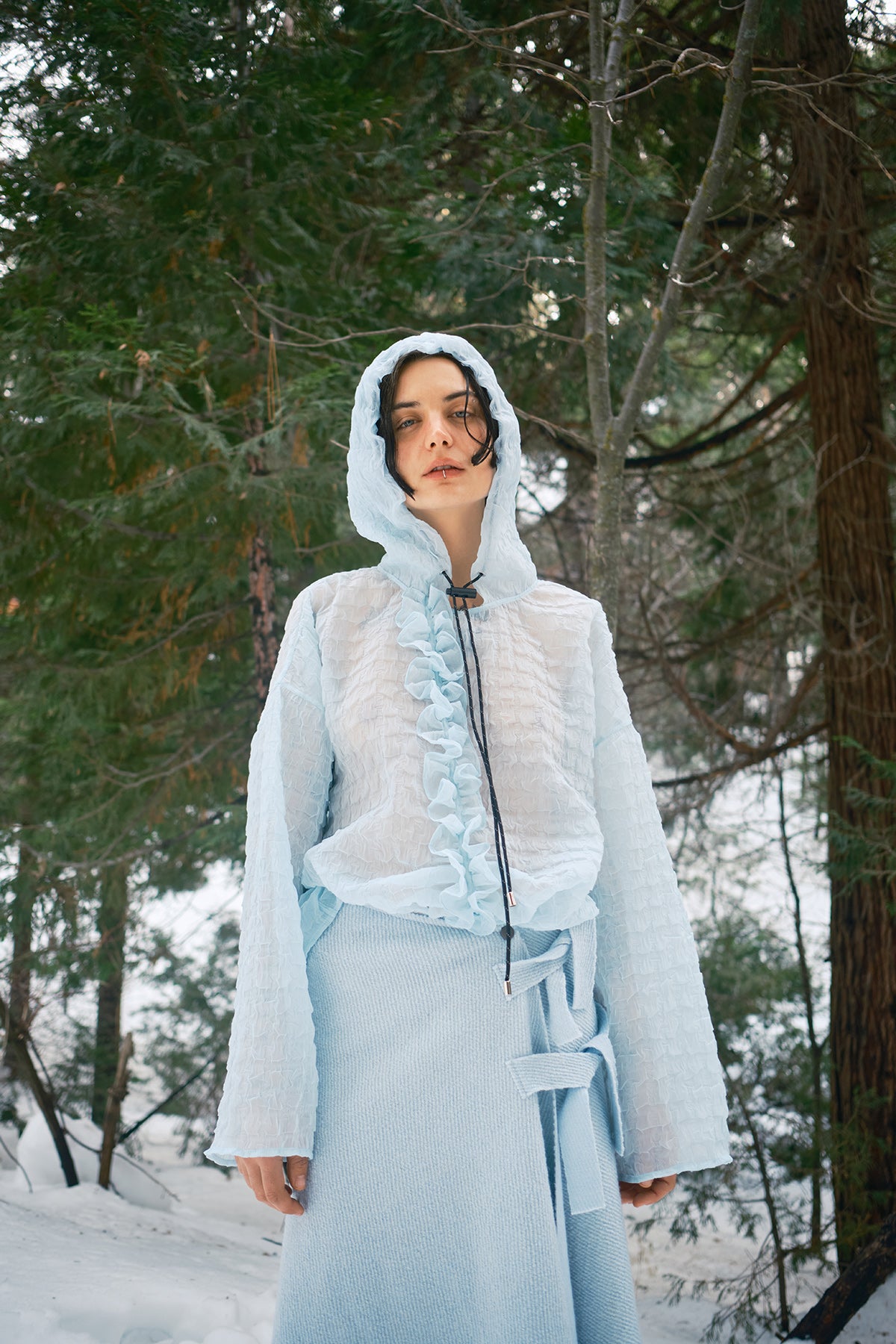 Bubble Hooded Top in Sky